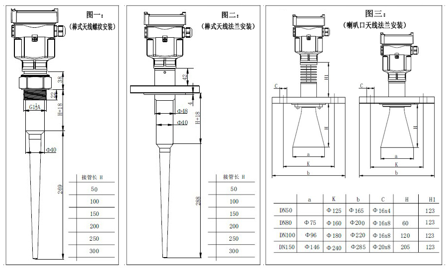 四、雷達液位計結構尺寸圖: