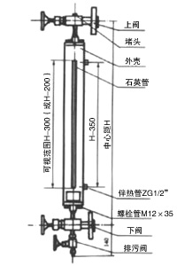 儀表上下閥都裝有PN1.6MPa,DN20的法蘭。通過焊接在容器上的法蘭,與容器組成連通器,透過玻璃管就可直接顯示容器內介質液位的高度。