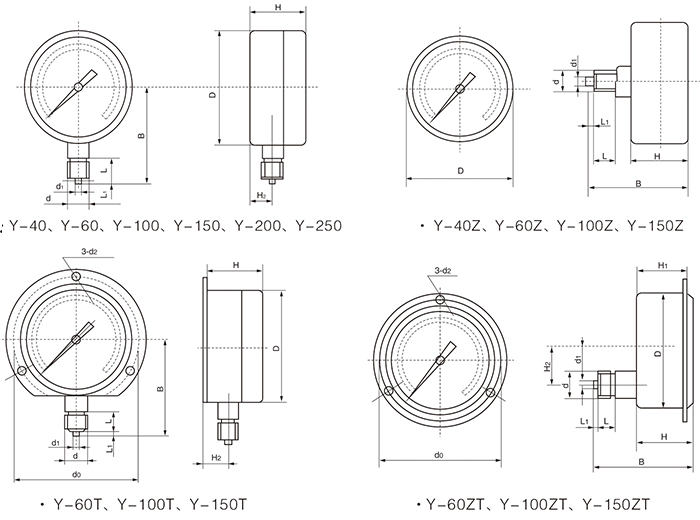Y-40/60/100/150/250系列一般壓力表