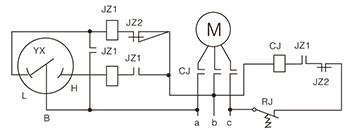 JZ1、JZ2-繼電器及觸點(diǎn) CJ-接觸器及觸點(diǎn) RJ-熱繼電器 M-電機(jī) YX-電接點(diǎn)壓力表 L-下限接點(diǎn)(綠) H-上限接點(diǎn)(紅) B-公共接點(diǎn)(黃) |