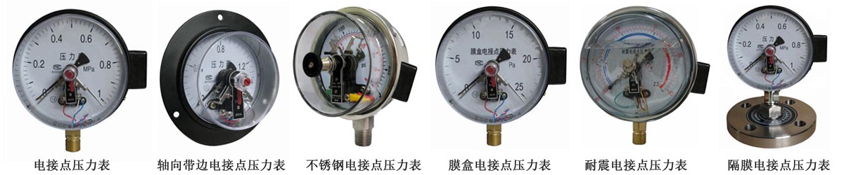 電接點(diǎn)壓力表具有測(cè)量控制功能,可任意設(shè)定上、下控制壓力值,動(dòng)作穩(wěn)定可靠,在石油、化工、電站、冶金等工業(yè)企業(yè)及機(jī)電設(shè)備上廣泛配套使用。