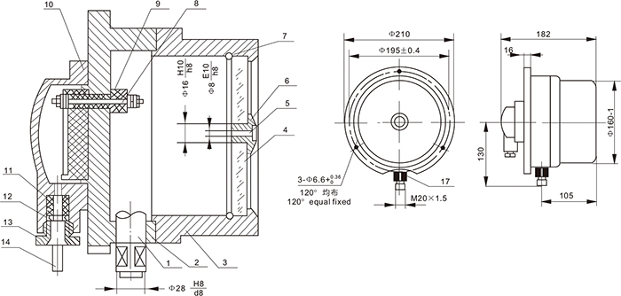 注: 防爆電接點(diǎn)壓力表的觀察窗的材質(zhì)其抗沖擊強(qiáng)度不小于4J。觀察窗一旦損壞,則不準(zhǔn)使用。