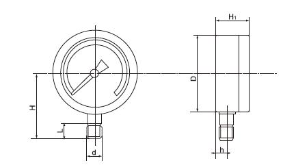 4.耐腐耐高溫特種壓力表外形尺寸圖: